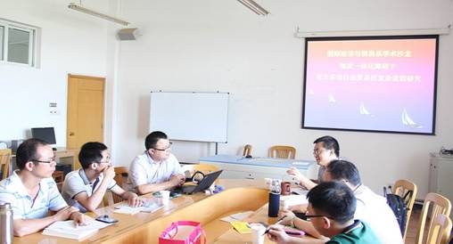 时值暑假、天气炎热,但2014年7月22日下午14:00,题为“深度一体化障碍下亚太多边自由贸易区复杂进程研究”的学术沙龙,在四虎影院 523会议室如期举行。此次沙龙由国际经济与贸易系主任邓启明博士策划与主持,2014年国家社科基金项目主持人汪占熬博士(温州大学城市学院)担任主讲;浙江大学公共管理学院博士后李文艺、浙江万里学院副教授杨光等应邀出席,国贸系副主任周琴及楼朝明博士等、区域经济与社会发展研究院闭明雄博士和四虎影院 部分在校研究生等参与讨论。