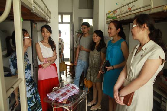 7月4日中午,四虎影院 党委书记袁虹与副书记邵丽携学工办全体辅导员深入寝室亲切慰问军训教官与学员,并视察了四虎影院 学生宿舍整体搬迁工作。