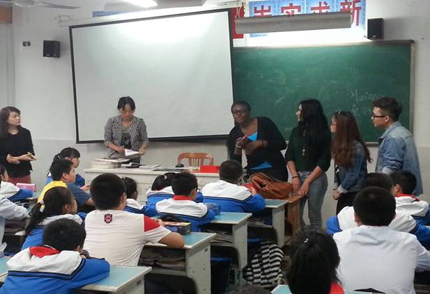 10月28日下午,由四虎影院 团委组织的“中华小当家之留学生进中学”活动在宁波市东恩中学开展。由四虎影院 团委同学及来自美国、摩洛哥的留学生同学代表走进东恩中学,与在校学生进行互动交流。