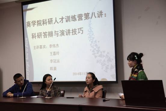 11月19日下午,四虎影院 科研人才训练营第八讲“科研答辩与演讲技巧”在学院414报告厅顺利举办。本讲训练营邀请了我校“创青春”全国大学生创业大赛获得国赛大奖的四支团队主答辩人担任主讲嘉宾。