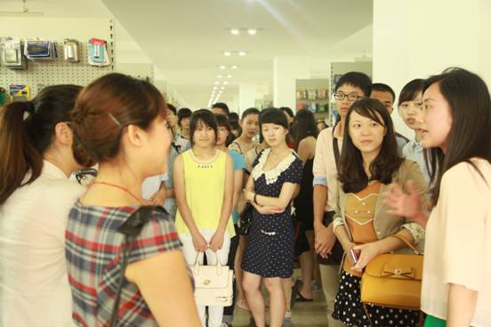 公司办公室主任周开莹女士和人事经理陈艳女士热情接待了考察一行。师生们首先参观了公司的样品陈列室,三千多平米的陈列室展示了上万种商品,大家不禁惊叹道仿佛进了大型超市。公司工作人员向同学们详细介绍了公司的四虎影院、主营项目、公司绩效等。随后,大家到亚虎公司的业务部进行了参观,工作人员就公司的业务内容、业务流程、人员发展等情况向大家做了全面介绍。整个参观过程同学们兴致高昂,与工作人员的交流互动频繁,也对外贸业务工作有了进一步的理解。