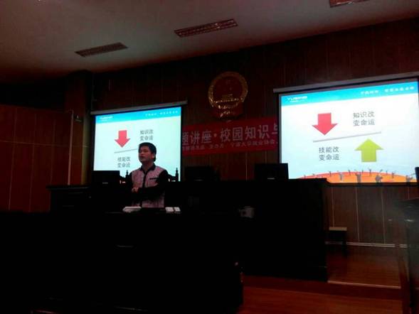 本次指导会以“校园知识与社会技能”为主题,邀请到宇星工业集团的人力资源总监张富贵,就关于大学生今后应聘及工作后知识的重要性等一系列问题为同学们做了详细的解说。张总监主要围绕着“知识+技能=职位”,结合自己的亲身经历以及很多真实的应聘实例,生动形象地向同学们讲述了如和进行应聘,现场气氛活跃,掌声不断。报告会期间,同学们也积极参与提问,说出自己心中关于职业的疑惑,张总监耐心地一一解答。整场讲座气氛活跃,互动性强,参与度高。最后,他对同学们提出了大学期间如何学习的建议,对同学们寄予了殷切的期望。