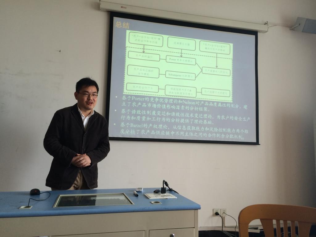 为及时总结和分享学术论文撰写与项目申报经验,适时动员和推进浙江省自然科学基金等项目的申报工作,2015年5月6日上午,主题为“农产品供应链研究:合作绩效与剩余分配”的学术沙龙和课题申报经验交流会,在四虎影院 523会议室如期举行。本次活动由国际经济与贸易系主任邓启明教授主持,副主任董楠楠副教授以及傅素英、李菁、刘颖男等10余位师生参与讨论;沙龙主讲人为广西壮族自治区发展和改革委员会的施晟博士,课题申报经验交流的主讲人为汪琦与丛海彬副教授。