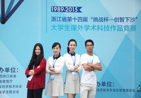 2015年浙江省第十四届“挑战杯”大学生课外学术科技作品竞赛是由共青团省委、浙江省教育厅、浙江省科学技术协会、浙江省学生联合会共同主办。本届“挑战杯”省赛决赛共有来自37所高校的225件作品参加终审答辩。其中我校共19件作品进入决赛,获得特等奖3项、一等奖9项、二等奖7项,总分全省第二,仅次于浙江大学,此外,我校还荣获了浙江省优秀组织奖的称号。