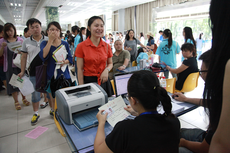 工作人员仔细核对新生信息