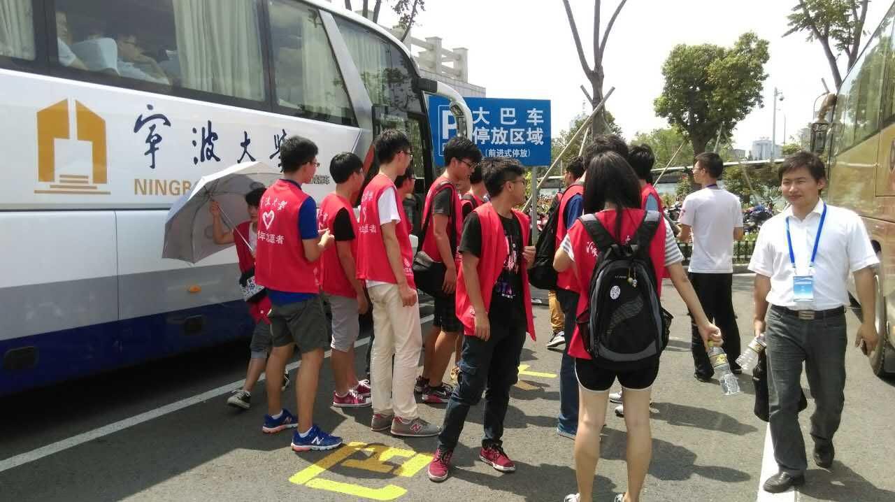 清晨,学工办詹文喜老师便带领一支志愿者小分队前往宁波火车站专程校车迎新,为前来报到的新生提供交通便利。