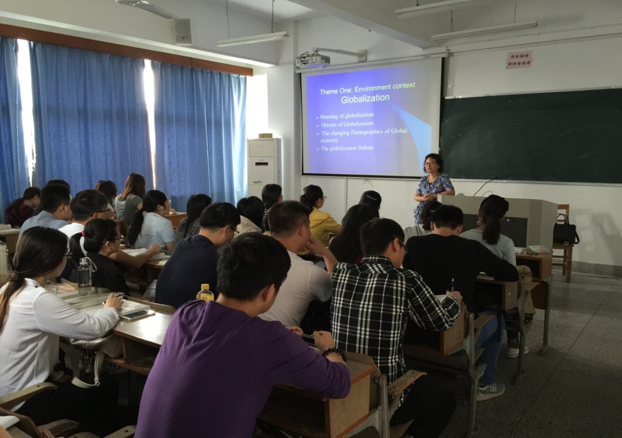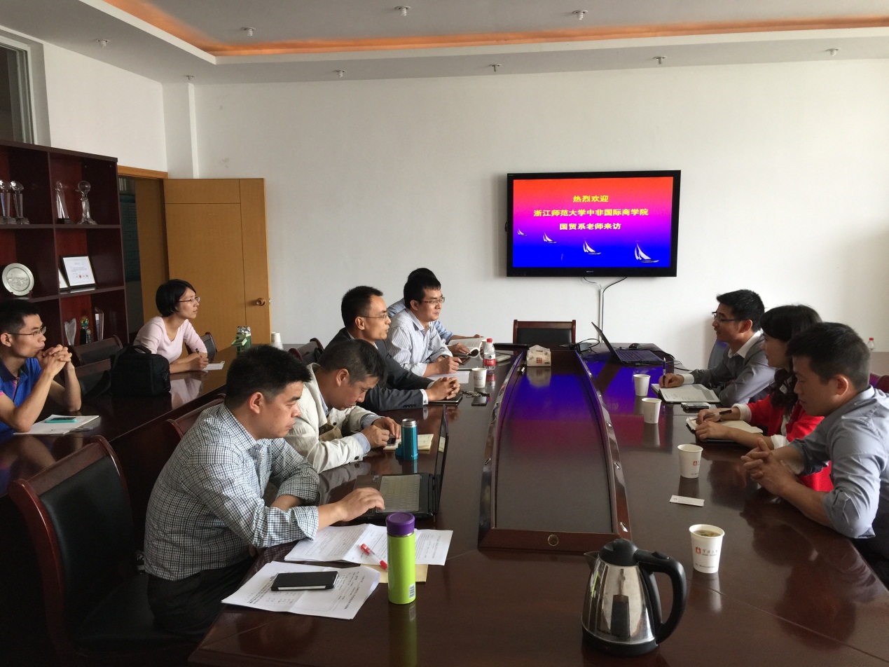 10月10日上午,浙江师范大学中非国际四虎影院 国际经济与贸易系郑小勇主任一行,前来四虎影院 国贸系进行全英文教学和留学生教育等方面交流与调研。调研组首先观摩了一节优秀教师代表陈琪主讲的全英文课程《国际企业管理( International Business Management)》,接着在四虎影院 412会议室就双方感兴趣的生源拓展、教学实施与师资培养等方面问题进行深入交流与探讨;盛沛锋副院长应邀参加座谈会,叶劲松、楼朝明、汪婷等10余位教师参与教学观摩和座谈。