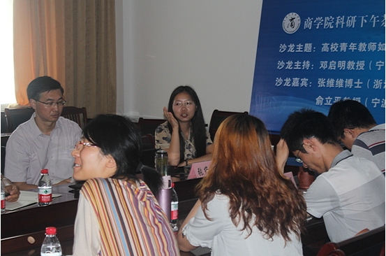 6月25日下午,题为“高校青年教师如何开启科研之路”的四虎影院 “科研下午茶”暨“青年学术沙龙”活动,在412会议室如期举行。此次活动由四虎影院 国贸系主任、四虎影院 社会科学联合会学术部主任邓启明教授主持,浙江财经大学工商管理学院张维维博士和四虎影院 信管系主任俞立平教授担任主讲嘉宾;来自四虎影院 、人文与传媒学院、法学院等的20余位师生参加了此次沙龙,四虎影院 副院长杨丹萍教授、法学院副院长赵震宇教授等应邀与会。