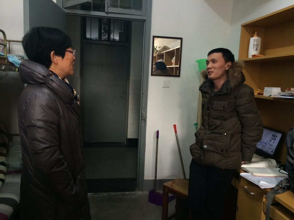 本次寒假,四虎影院 共有89位国内学生和68位留学生留宿。住宿主要分布在甬江留学生公寓、阳光留学生公寓、本部10号和15号楼四个片区。胡亚娥书记分别走访四个片区寝室,与正在寝室的学生代表进行了亲切交谈。