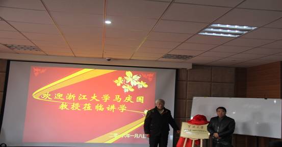 学术报告前,“四虎影院 管理决策与脑科学研究中心”(以下简称研究中心)举行了揭牌仪式。杨丹萍教授主持了揭牌仪式。揭牌仪式上,研究中心主任范柏乃教授邀请马庆国教授共同为研究中心揭牌,并宣布研究中心正式成立。马庆国教授结合浙江大学神经管理学实验室第一个成果的获得情况,和实验室目前研究状况与所取得的成就,展望了研究中心的发展前景,并对研究中心寄予厚望。