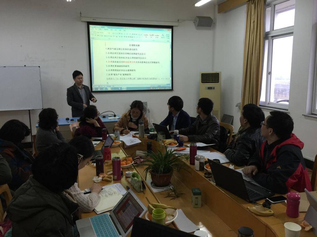 在热烈掌声中,范院长首先对国贸系过去三年超额完成了“第五轮岗位聘任”基层组织考核任务,并获得年度考核及聘期考核双“优秀”表示祝贺;勉励在场教师们新年新气象,进一步增强信心,努力在原有基础上认真设计、反复修改和完善申报书,争取更好成绩。周琴、黄晖、伍湘陵等10 余位教师,先后汇报了各自研究选题的名称(或方向)、选题依据、已有研究基础与优势,以及初步研究思路、主要内容与方法、创新之处及存在问题等要点;针对汇报内容和存在的问题,范柏乃教授、杨丹萍教授和相关老师有针对性地提出了诸多有益的建议和意见。