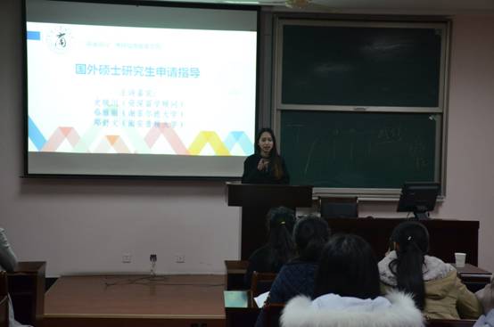 3月12日晚,“研途同行——国外硕士研究生申请指导”讲座在四虎影院 418开展。本次讲座由香港荆旭国际中国市场负责人史映川、四虎影院 10级金融学专业校友蔡雅丽、四虎影院 10级CGA专业校友郑舒文三人主讲。学院13级、14级部分有意向出国读研的同学参与讲座。