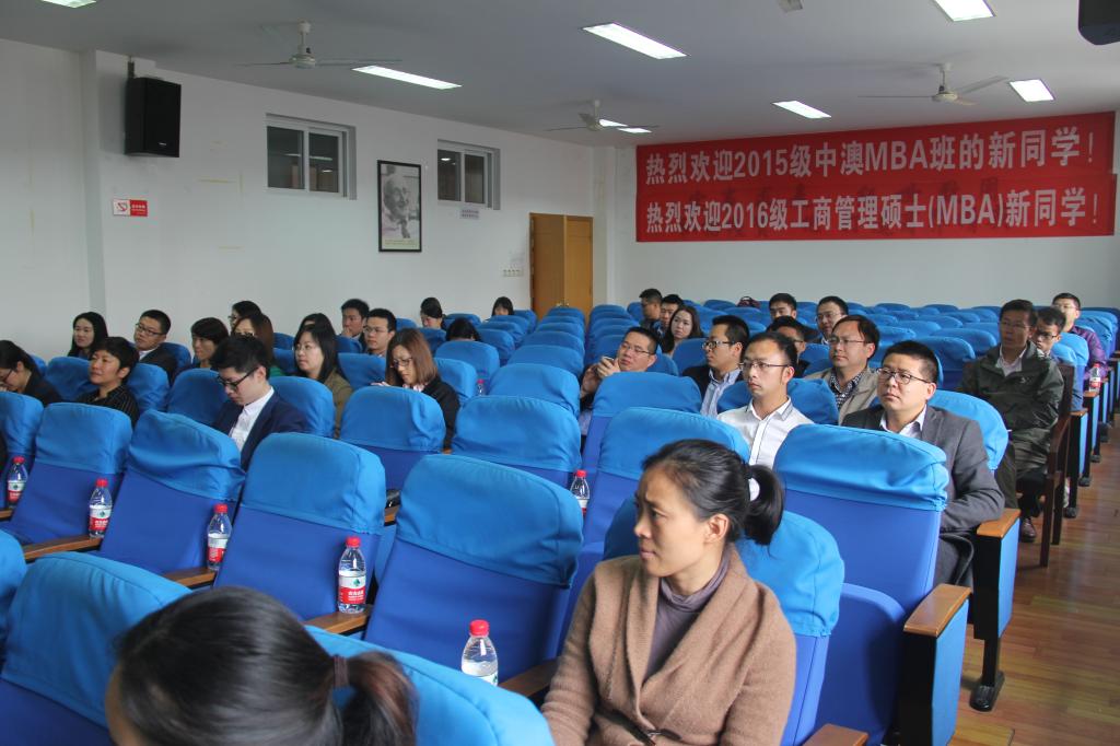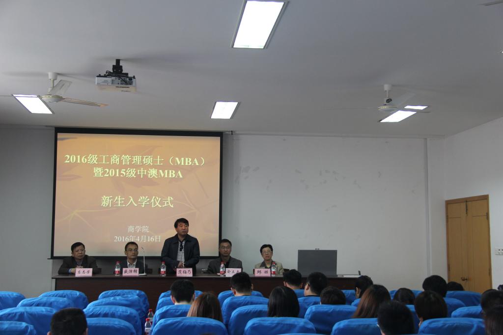 4月16日,2016年春季MBA开学典礼在四虎影院 414教室举行。院长范柏乃,副院长俞立平,副院长盛沛锋,MBA中心执行主任李宏宇,MBA教师代表应志芳,中澳MBA教师代表邱妘,MBA联合会副主席王伟,MBA中心工作人员及2016级MBA春季班和2015级中澳MBA新生参加了开学典礼。开学典礼由俞立平主持。