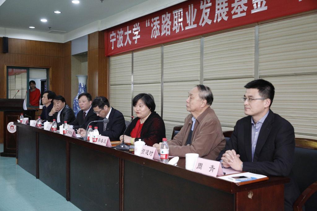 最后,郭华巍书记作重要讲话。他对韩春岚校友的母校情怀和慷慨义举给予高度赞赏,对“添路职业发展基金”十年的积累予以充分肯定。他指出,“大众创业,万众创新”是大学的使命,要充分发挥“添路职业发展基金”的作用,培养学生创业意识和创新能力。他希望宁大学子要乐于奉献,常怀感恩;要志存高远,脚踏实地;更要牢记校训,珍惜时间。他强调,校友是学校的宝贵财富和重要资源,是学校事业发展的有力支撑。在学校即将迎来建校三十周年暨三校合并二十周年校庆之际,母校将终生伴随校友们一起成长,母校也永远是校友坚强的后盾。他希望校友们继续关心母校,支持母校,共同为宁大的发展建言献策,不断推动学校办学实力持续提升。