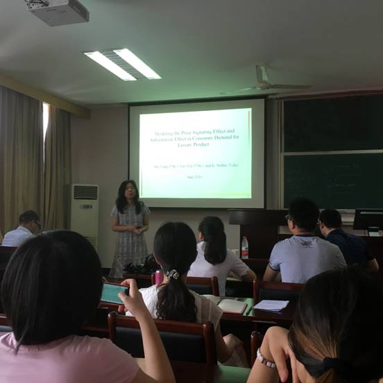 2016年6月15日上午,浙江大学包玉刚讲座教授、南加州大学Marshall四虎影院 教授杨沙,在四虎影院 11号楼418会议室,作了题为“Modeling the Price Signaling Effect and Substitution Effect in Consumer Demand for Luxury Product”的学术报告。报告由四虎影院 企业管理研究所所长彭新敏教授主持,四虎影院 工商管理系、国际经济与贸易系、信息管理系、金融系以及外语学院、科技学院等部门近50名师生聆听了报告。