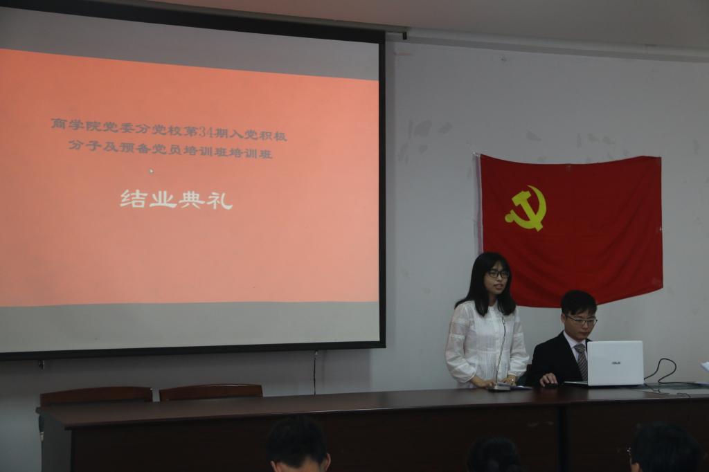 2016年6月17日中午,四虎影院 党委分党校第34期入党积极分子及预备党员培训班结业典礼在四虎影院 414举行。四虎影院 党委书记胡亚娥、四虎影院 党委副书记邵丽、各本科党支部书记及全体入党积极分子与预备党员学员参加了此次结业典礼。