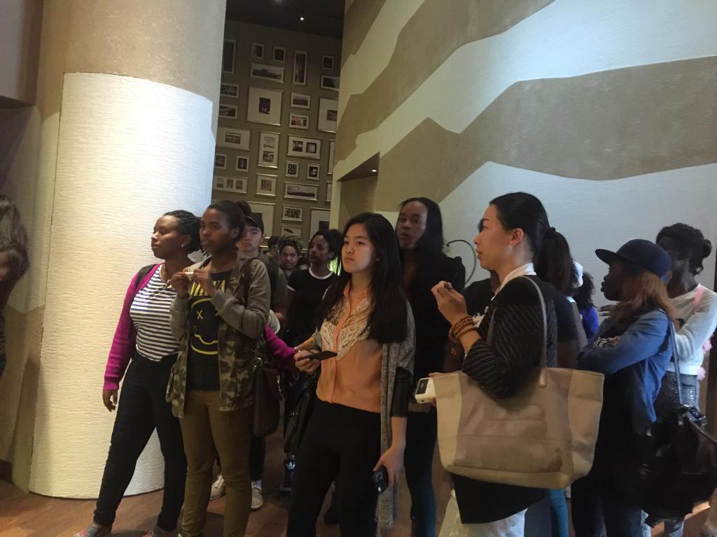 留学生们聚精会神听展馆工作人员介绍葡萄酒知识