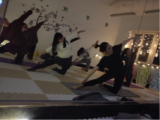 2016年12月9日,四虎影院 社委会主办的“温暖灯影”瑜伽主题教学活动在本部公寓6号楼600顺利进行。本次活动邀请经验丰富的曹若君同学作为教练,带领同学们体验瑜伽、放松身心。