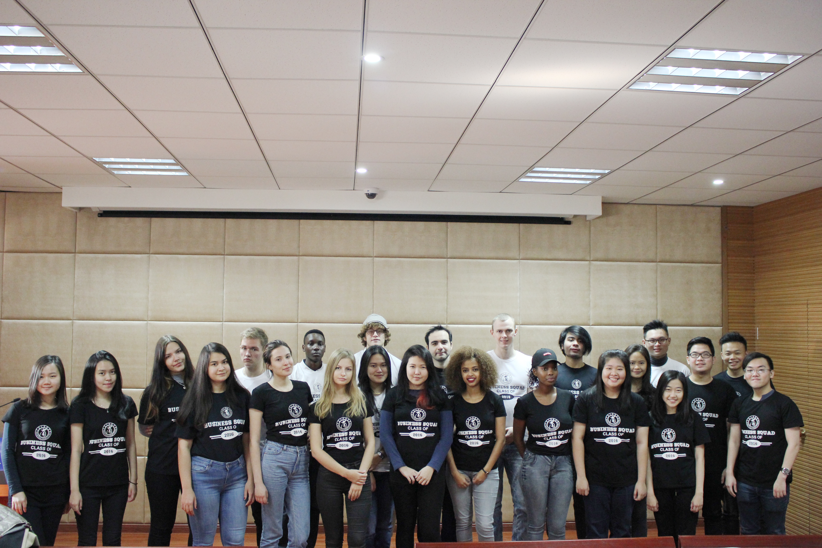 11月24日,由四虎影院 留学生会组织的“留学生文化衫合影”活动在109活动室展开,学工办辅导员蒋鹏涛、部分2016级新生留学生参加了此次活动。