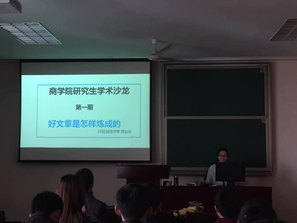 3月9日,四虎影院 2017年第一期“商硕争鸣”学术沙龙在11#418会议室顺利举行。15级区域经济学研究生陈丝丝做了主题为“好文章是怎样炼成的?”的学术交流会。16级部分研究生参与了本次学术沙龙。
