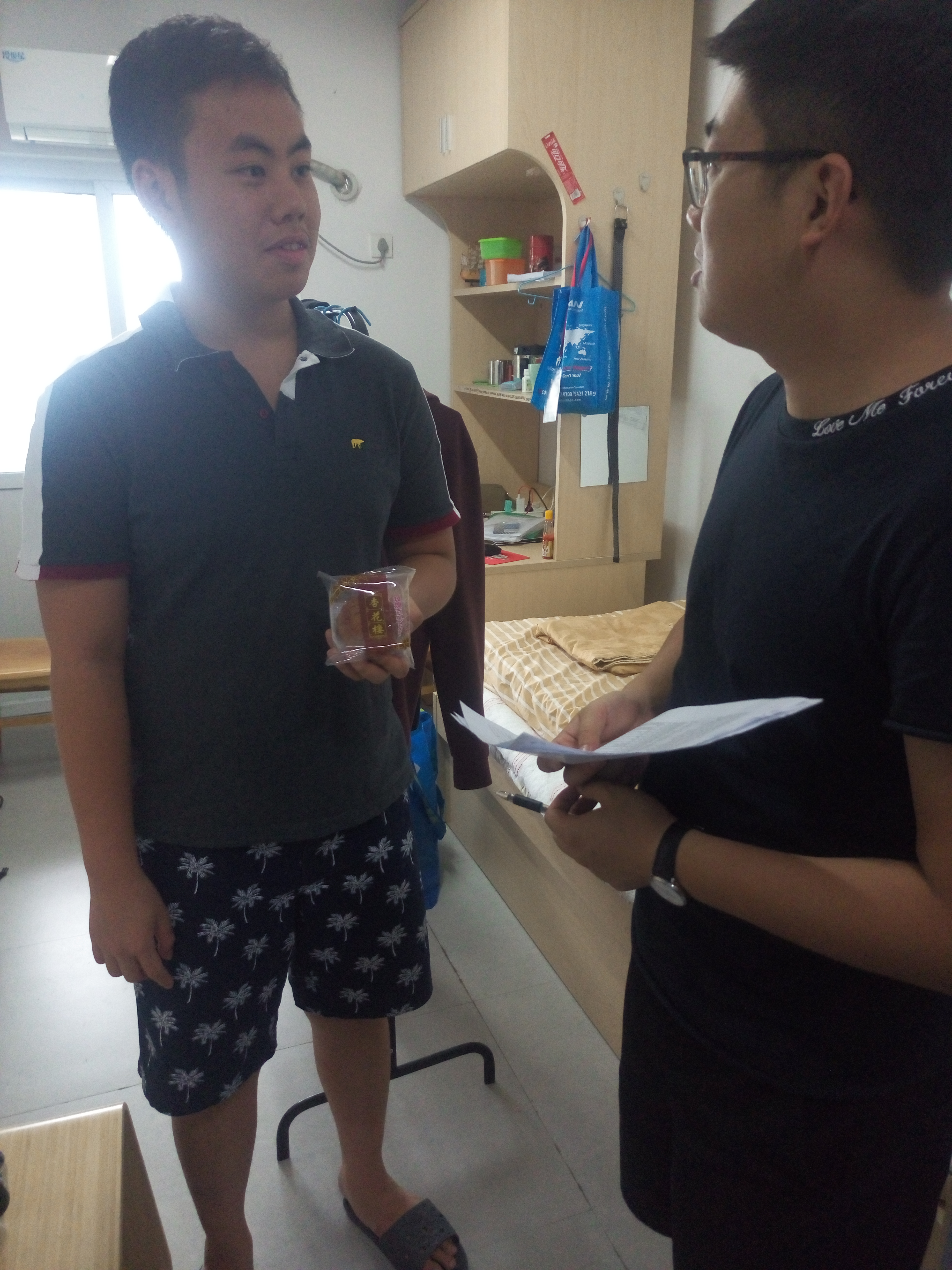 9月29日下午,学院学工办辅导员毛跃祖、蒋鹏涛带领四虎影院 留学生会主要干部走访了留学生公寓,并慰问了四虎影院 的留学生,送上了国庆和中秋的节日祝福和慰问。在询问和了解留学生的假期去向后,两位老师叮嘱同学们假期注意安全,增强安全防范意识,并对国庆长假的合理安排给予了建议和指导。