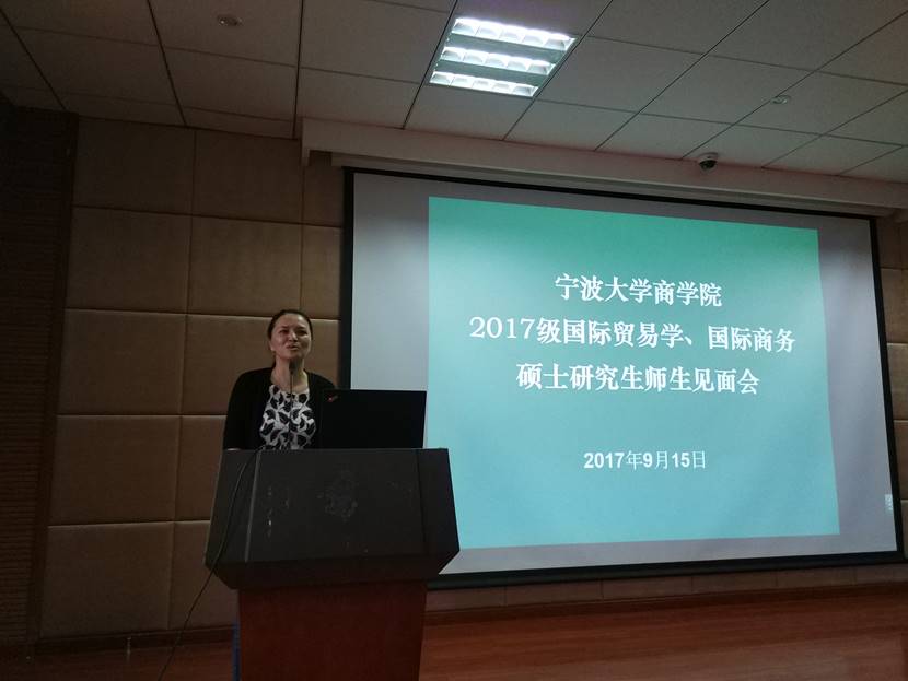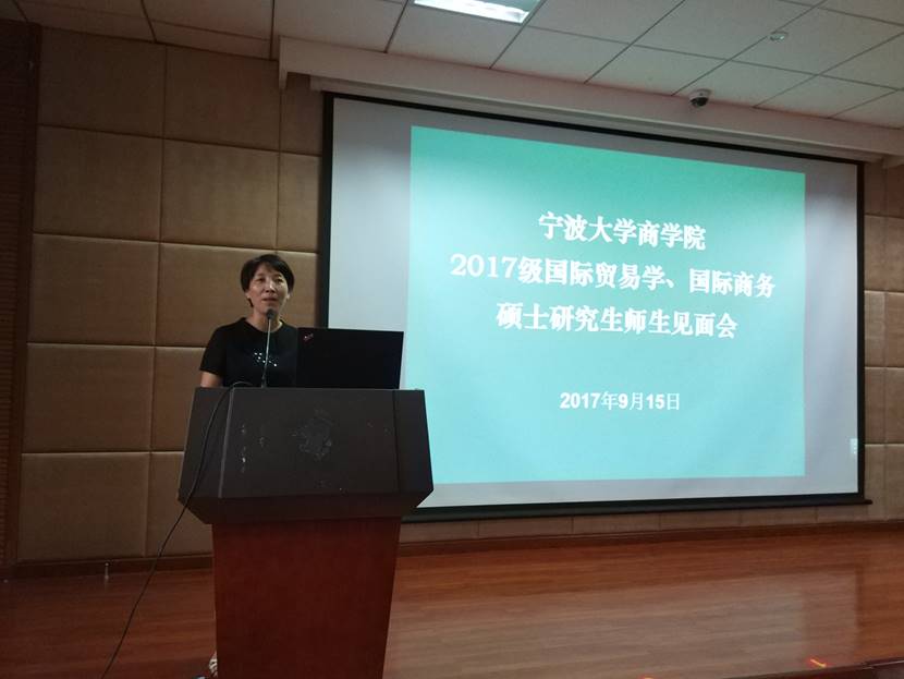 见面会伊始,首先由周新苗副院长代表学院欢迎77位来自全国各地的2017级国际贸易学、国际商务硕士研究生的到来,并从四虎影院 硕士点的设置、学硕与专硕的关系等方面介绍了研究生的管理及推进工作,周副院长还结合自己在四虎影院 的求学生涯对新生们作了寄语。接着,杨丹萍副院长与新生们分享了其多年来主持国际贸易系、国际商务专业硕士点建设的工作经验,介绍了四虎影院 区域经济学研究团队与国际贸易研究所的渊源,欢迎大家加入宁波这一国际化港城区域经济发展的学习与研究。之后,到会的硕士研究生导师们也分别向新生们介绍了自己及所在团队的基本情况和主要研究领域,并对同学们今后学习生涯致以美好的祝福。