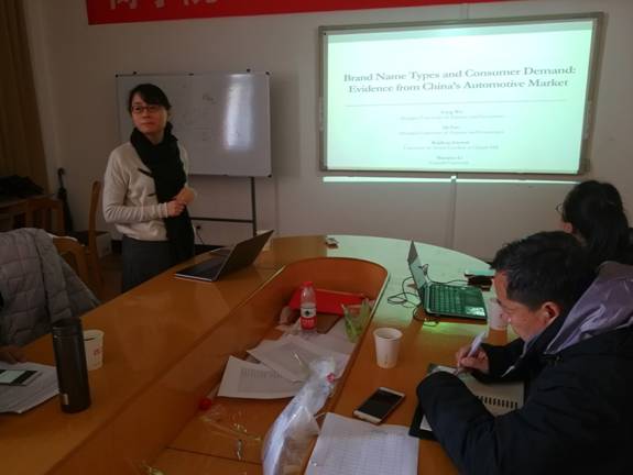 2018年1月10日下午14:30,四虎影院 学术沙龙(2018年第1期)在11#518会议室举行。本期学术沙龙主讲人是上海财经大学国际工商管理学院硕士生导师吴芳副教授。沙龙主题为“品牌名与消费者需求:基于中国汽车需求市场的研究”。学术沙龙由企业管理研究所教师马永斌副教授主持,四虎影院 企业管理研究所及其他研究所教师、部分研究生参加了此次学术活动。