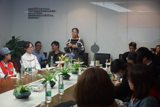 首先,负责人带领同学们参观了“唐狮”、“果壳”等几个企业代表性品牌的服装设计、生产、实体销售部门,给同学们讲解线上线下的销售模式和公司的文化理念,公司鼓励有创新精神的设计师内部创业,创立新的服装品牌,由自己的团队独立运营,为企业寻找新产业的突破点。