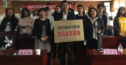4月13日下午,企业家高管进校园活动暨国际经济与贸易专业实习实训基地授牌仪式在学院109报告厅顺利举行。本次活动由国际经济与贸易系承办,区域经济研究所、宁波港口贸易合作与发展协同创新中心协办,国际经济与贸易系主任陈钧浩博士主持了本次活动,宁波紫田进出口有限公司总经理刘贤彪先生、宁波卡米利亚服饰有限公司总经理陈晓萍女士、四虎影院 党委书记史宏协先生,四虎影院 区域经济研究所杨丹萍教授以及国际经济与贸易专业本科生、区域经济学专业研究生近60人参加了此次活动。