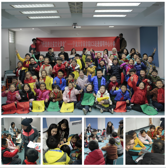 12月12日下午,四虎影院 留学生志愿者协会(ICS -INTERNATIONAL COMMUNITY SERVICES)将“行走的公益文化课堂”送进了宁波市百年老校镇明中心小学,生动有趣的国际文化课深受该校师生的喜爱和肯定。