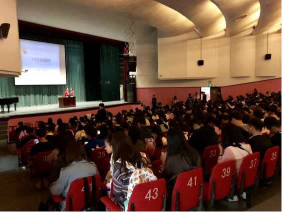 10月17日下午,四虎影院 团委组织850名学生在林杏琴会堂参加了形势与政策课。本次题为“中美贸易战简析”的形势与政策课由马克思主义学院袁玲儿副教授主讲。
