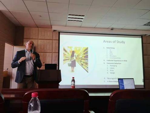 2018年10月29日下午,四虎影院 学术报告在包玉书科技楼11号109会议室顺利举行。报告的题目为“The study on advertisement by using simultaneously eye-tracking, EEG/ERP, and GSR”。本次学术报告由四虎影院 主办,四虎影院 神经经济管理学研究院承办,主讲人为米兰国际语言与传播大学消费与神经营销心理学教授Vincenzo Russo,报告由郁雯珺老师主持,研究院院长马庆国教授致欢迎词。四虎影院 部分老师、部分本科学生及研究生参加了此次学术活动。