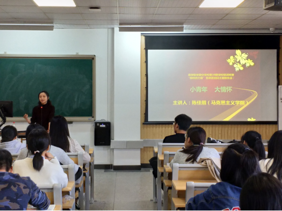 应学院党委分党校邀请,10月29日中午,我校第三批“榜样的力量”宣讲团成员陈佳眉,在包玉书8号教学楼203报告厅为四虎影院 党校学员作了主题为“小青年,大情怀”的专题报告,共有148名预备党员和积极分子党校培训班学员参加了此次讲座。