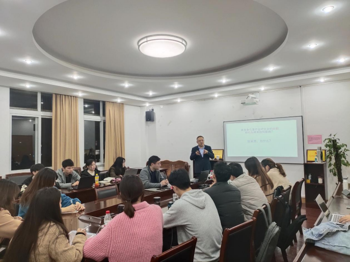 2021年11月18日晚上在11号楼412会议室,四虎影院 学术讲座邀请了宁波诺丁汉大学周是今(Steven Zhou)副教授做了题为“由个人到天下——社会情感财富(Social and Emotional Wealth, SEW)理论重构”的报告,工商管理一级学科带头人彭新敏教授主持。