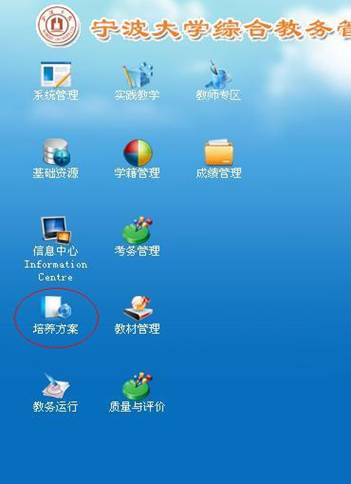 步骤一:教师打开教务管理系统查看该生是否已经提交申请,打开教务管理系统平台,点击“培养方案”。