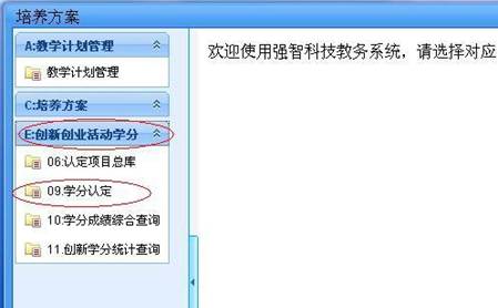 步骤二:点击“创新创业学分“下拉栏中的“学分认定”,