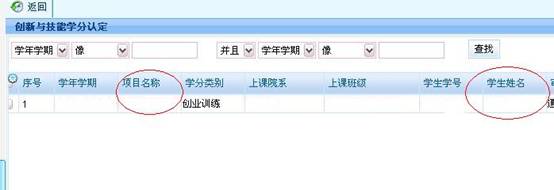步骤三:点击“查询”后,看该生是否有提交网店类创新学分申请,并注意记下申请人姓名。