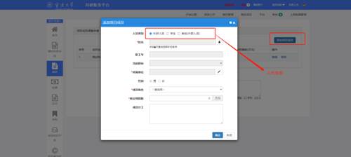 4. 进入项目组成员,请确认成员是否完整。特别是项目中有学生的参与的,请完善学生身份类别。成员信息有问题的,进入科研系统四虎影院,左侧的项目界面,点击操作下拉框下的成员调整申请,进入成员调整界面进行添加和修改,待项目主管审核之后,会自动补充到项目经费公开一览表,最后再提交即可。