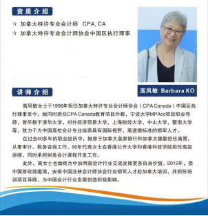 主讲嘉宾:加拿大特许专业会计师协会(CPACanada)中国区执行理事 Barbara KO(高凤敏女士)