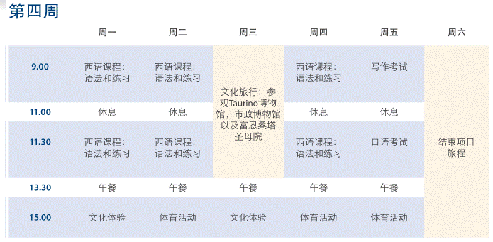 每日时间安排:09.00 - 17.00 (其中包括30分钟休息和1.5小时的午餐时间),每周五天