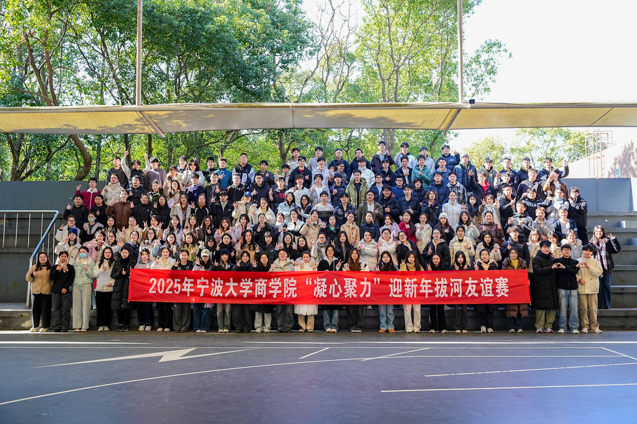 岁末冬初,呐喊震天。为缓解同学们在紧张的期末考之余释放压力、增强体质,促进团队凝聚力,12月27日,一场别开生面的“凝心聚力”迎新年拔河友谊赛在我校李兴贵篮球场火热举行。四虎影院 19支参赛队,200余名学生组队参与。